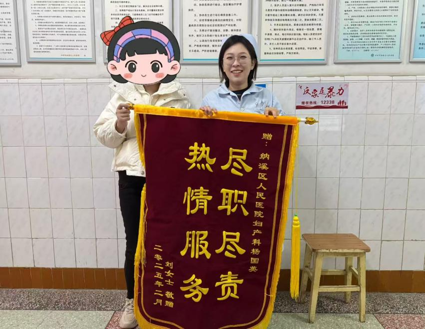 刘女士是一名高危孕产妇,门诊妇产科护士杨国英在刘女士整个孕期耐心进行健康指导,了解及跟进产检进程,定期进行电话随访,于近日顺利生产,为此特地送上锦旗表达感谢。